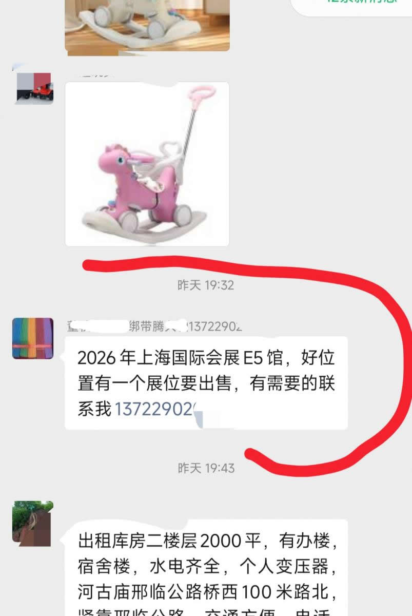 [企商供求] 2026年上海国际会展E5馆,好位置有一个展位要出售,有需要的联系我1372290,回复后显示电话  诚邀来电,请说明是在 童车网 上看到的,欢迎您分享!